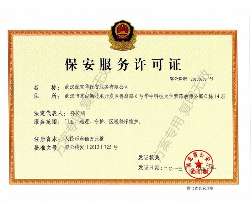 您好,歡迎您訪問武漢深寶華保安公司保安加盟網!